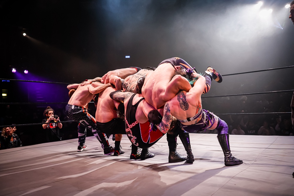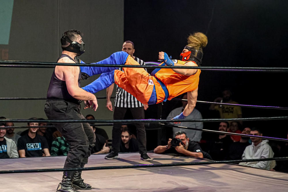 Οκτώ παλαιστές, έξι άνδρες και δύο γυναίκες, έδωσαν μια αληθινή μάχη χωρίς ανάσα, με το ρινγκ να μην προλαβαίνει να «αναπνεύσει». Η ένταση ήταν ασταμάτητη, τα χτυπήματα διαδέχονταν το ένα το άλλο και το κοινό παρακολουθούσε όρθιο.